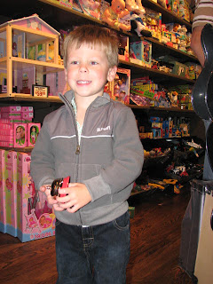 Palmer just happy to be at Cracker Barrell with a new toy!